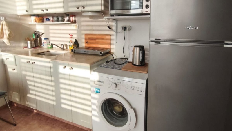 Есть мебель и техника: холодильник, плита, кондиционер, стиральная машина